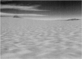 Now that we have added terrain to the scene, it is starting to look better. Figure 4–3 shows the terrain and skybox. We currently have a scene of rolling sand dunes with mountains off in the distance. This is better, but still a bit empty. The next section of this chapter will help us dress up the scene a bit by adding more objects to the scene.